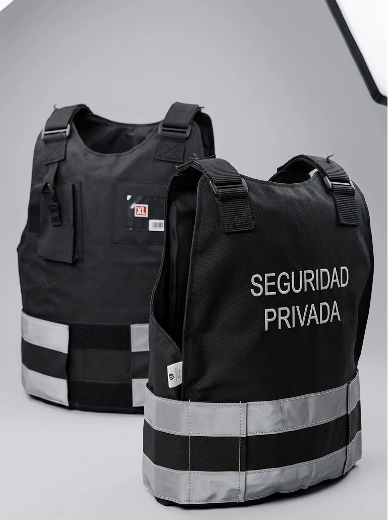 Chaleco anticorte certificado para guardias de seguridad privada, diseñado para entregar alta protección, resistencia y durabilidad en entornos operativos exigentes. Cuenta con tallaje estandarizado desde talla S, sistema de ajuste mediante velcro en cintura y hombros para un calce seguro y ergonómico. Ofrece protección contra punzones, tijeras, vidrios y diversos objetos cortopunzantes. Fabricado con tela exterior de poliéster con recubrimiento PVC, incorpora costuras reforzadas en zonas de alto desgaste, asegurando una larga vida útil.